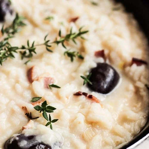 Procurando uma receita de risoto? Esta receita de risoto de azeitonas e bacon é uma refeição fácil e deliciosamente cremosa.